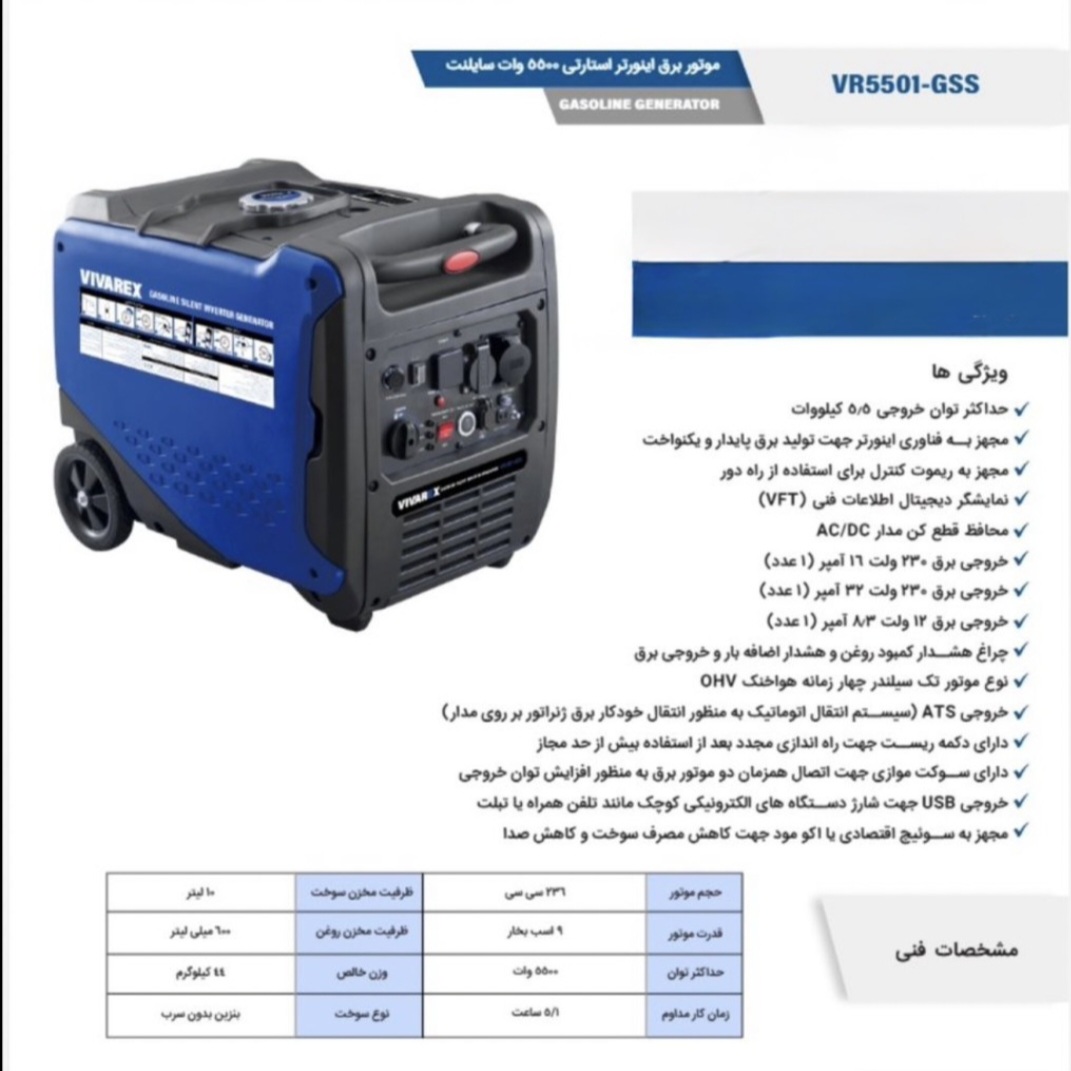 موتور برق اینورتر استارتی 5500 وات سایلنت VR5501-GSS